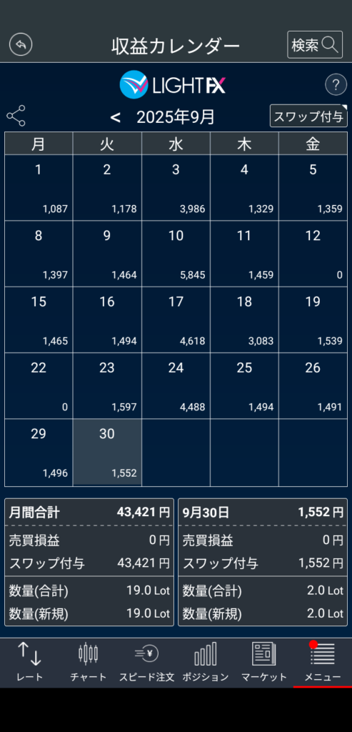 相変わらずスワップポイント利益だけみると圧倒的プラスです。