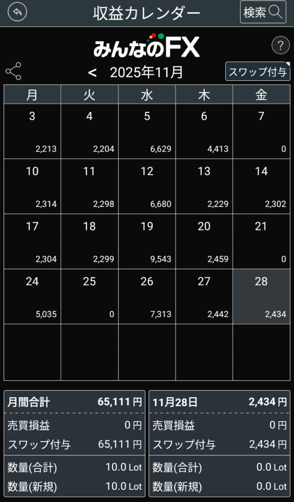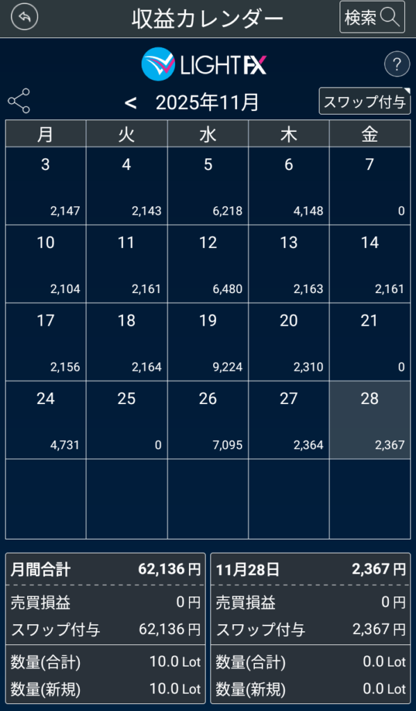 まずはずばっといつも通り2025年11月のスワップポイントを紹介します。