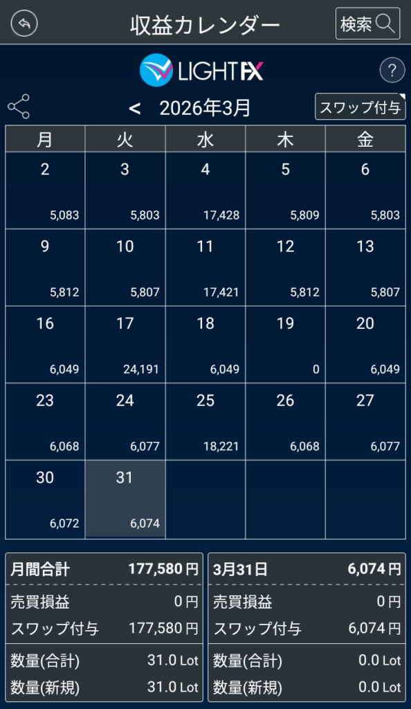 【3月の収支報告】2026年3月のスワップ(トルコリラ円)による不労所得は+420,285円でした( ..)φメモメモ。